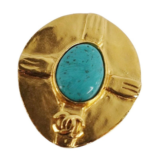 Vintage Chanel Brooch 98P Coco Mark Aqua