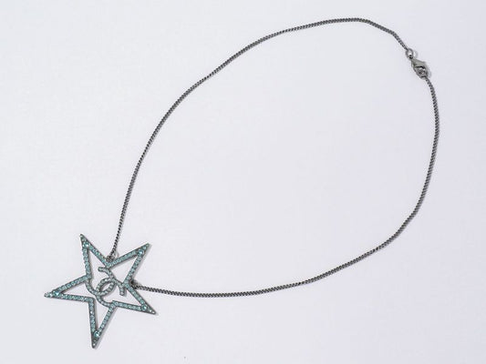 Object Chanel Coco Mark Star Rhinestone Necklace Pendant Metal Silver Hardware