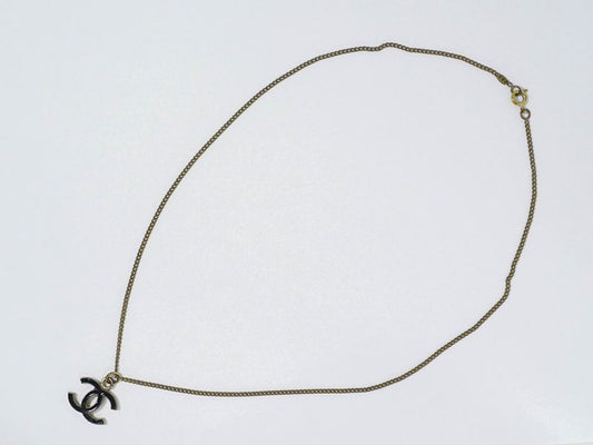 Authentic Chanel Coco Mark Necklace Pendant GP Gold Plated Black Accessories