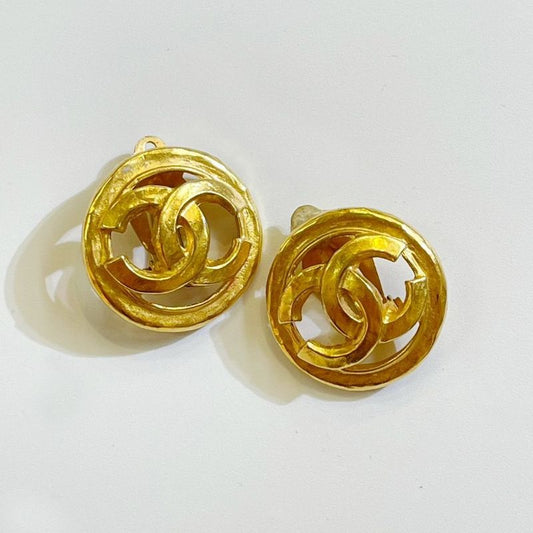 Chanel ⑤ 70-80s Vintage Coco Mark Circle Earrings Ladies Gold