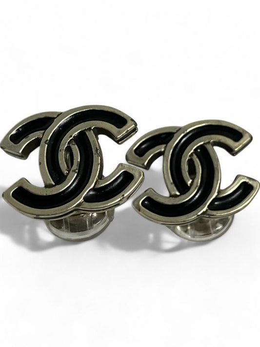 Chanel 04A Coco Mark Earring Ladies Black X Silver