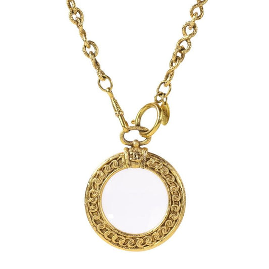Chanel Vintage Coco Mark Loupe Necklace Long Chain Pendant Gold Color Women's