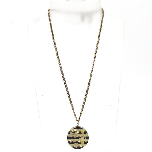 Chanel Necklace - Gold X Ivory X Black No5 / Striped / Coco Mark / Ribbon /