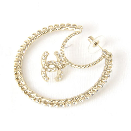 Metal Chanel Pearl/rhinestone Hoop Earrings With Box