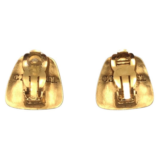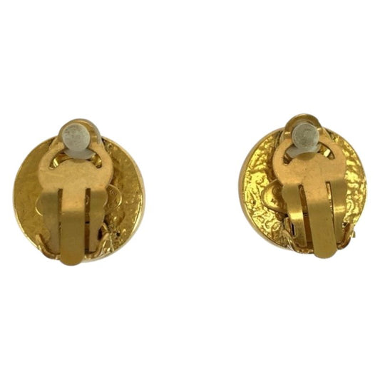 Chanel Vintage Coco Mark Gripore Gold Metal Earrings Ladies 502710