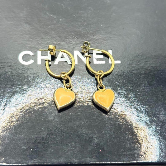 Chanel Earrings Coco Mark Heart Gold Hoop