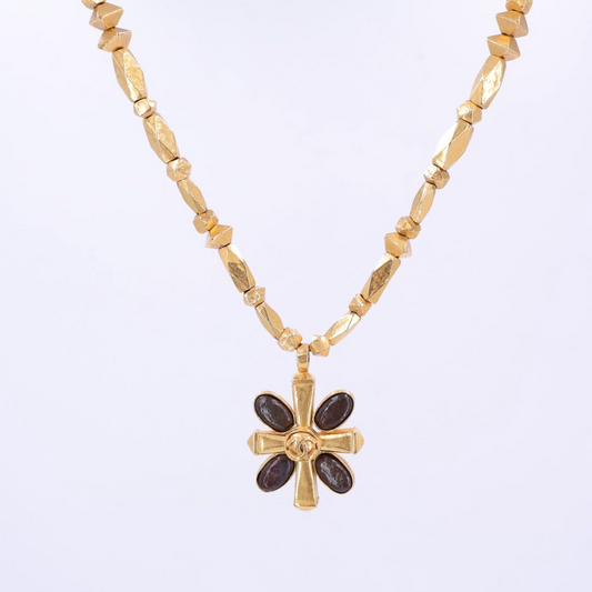 Chanel Chain Necklace Coco Mark Gold Accessory Vintage Flower Motif Ladies