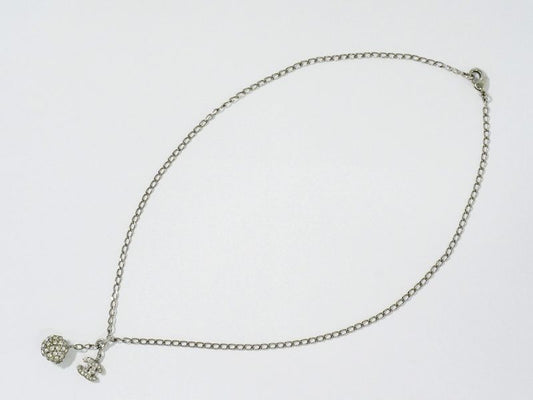 Authentic Chanel Coco Mark Ball Rhinestone Necklace Pendant Metal Silver