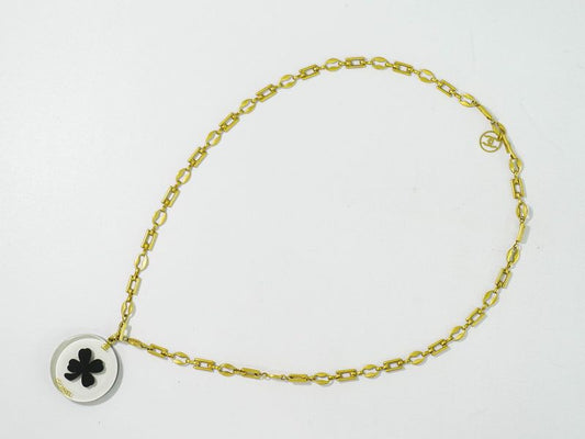 Authentic Chanel Clover Necklace Pendant Plastic GP Gold Plated Clear Black