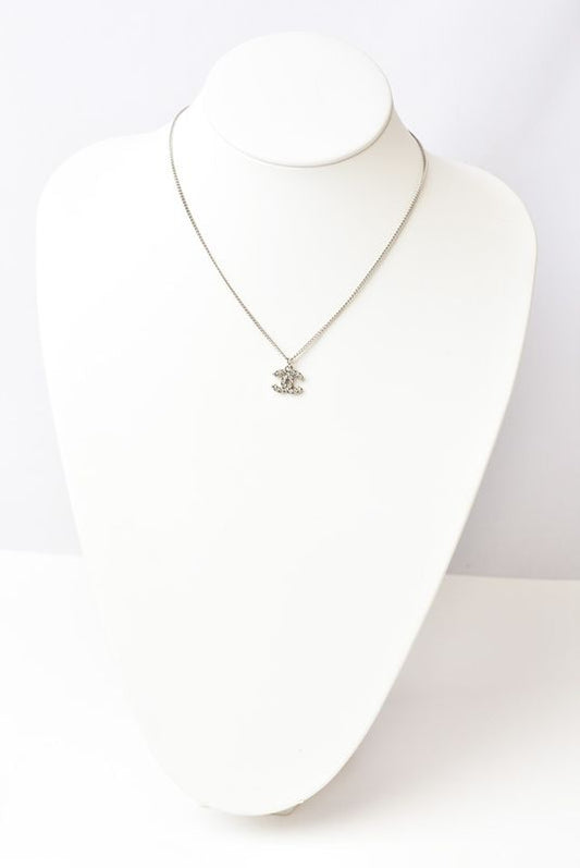 Chanel Necklace Pendant Chanel Coco Mark CC Rhinestone Silver White 230902