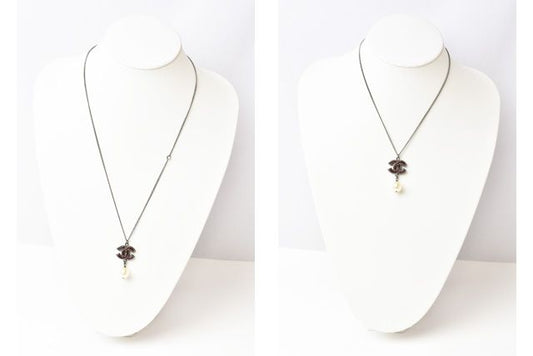 Chanel Necklace Pendant Chanel CC Marked Rhinestone Pearl Black White Silver
