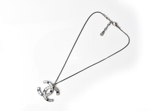 Chanel Necklace Pendant Rhinestone Gunmetal Blue