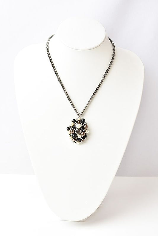 Chanel Necklace Pendant CC Mark Rhinestone Pearl Black White 230653