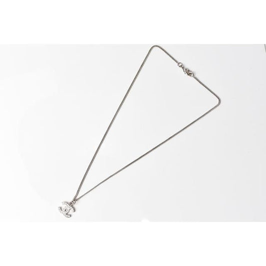 Chanel Necklace Pendant Chanel Coco Mark CC Rhinestone Silver White