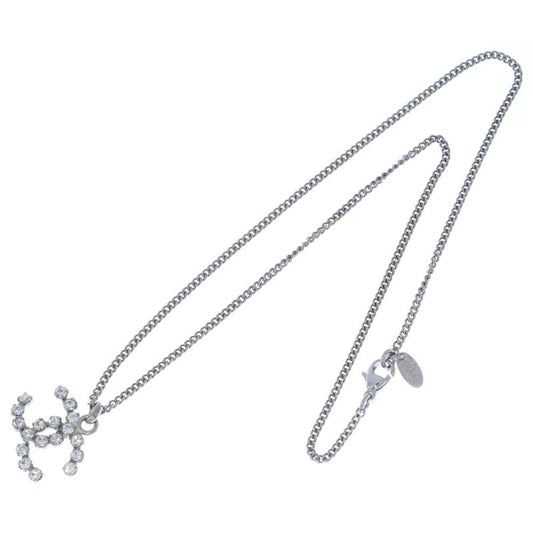 Chanel Coco Rhinestone Necklace Pendant Chain Silver