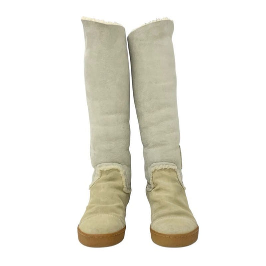 Chanel Boots Long Boots Shoes Suede Beige Shearling Boots Here Mark