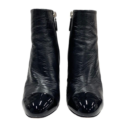 Chanel Boots Short Boots Shoes Leather Patent Black Silver Here Mark Chain
