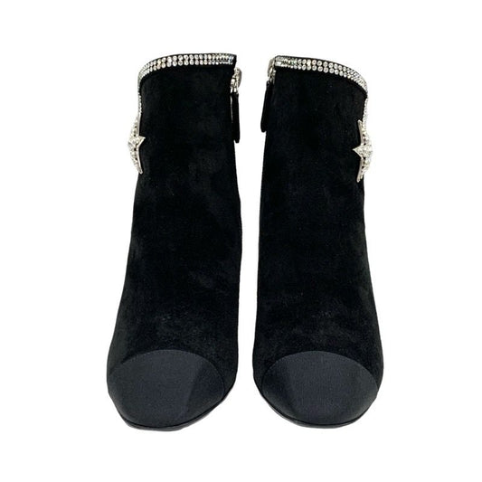 Chanel Boots Short Boots Shoes Suede Fabric Black Rhinestone Star