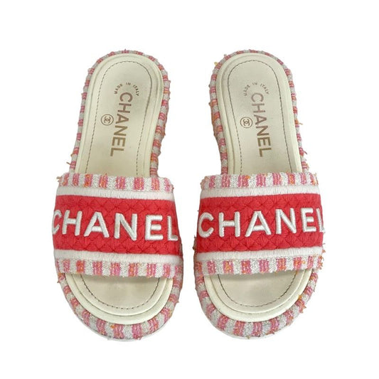 Chanel Sandals Shoes Tweed Cork Red White Unused Here Mark
