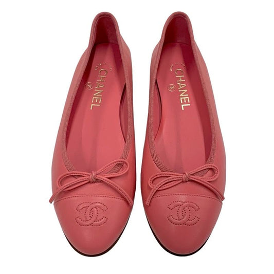 Chanel Flat Shoes Leather Pink Unused Ballet Shoes Here Mark Ribbon