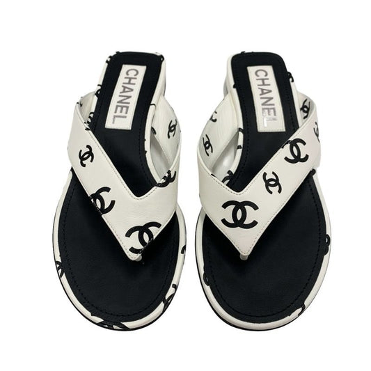 Chanel Sandals Shoes Leather White Black Thong Sandals Flat Sandals Heremark