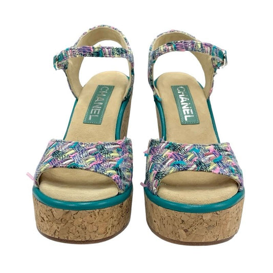 Chanel Sandals Shoes Tweed Cork Multicolor Unused Here Mark