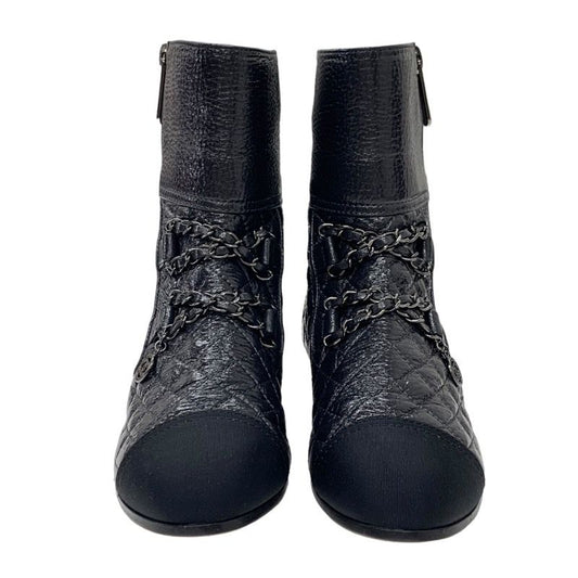 Chanel Boots Short Boots Shoes Leather Black Here Mark Chain Matelasse