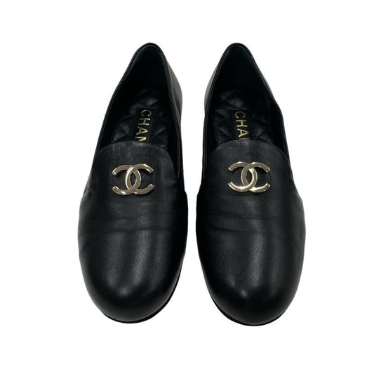 Chanel Loafers Leather Shoes Lambskin Black Gold Opera Shoes Flat Shoes Here