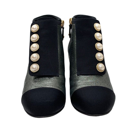 Chanel Boots Short Boots Shoes Fabric Metallic Gray Here Mark Pearl