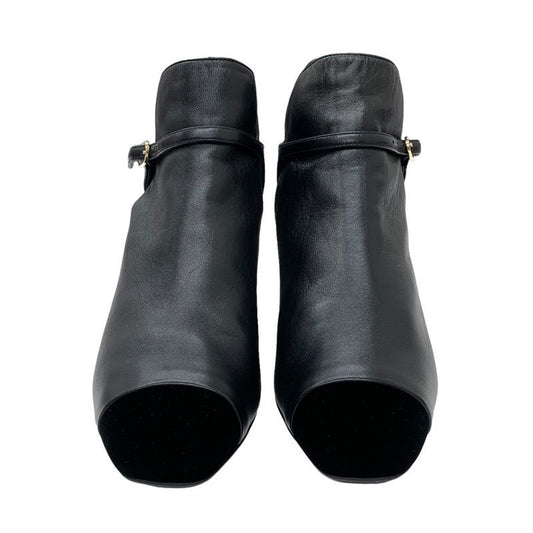 Chanel Boots Short Boots Shoes Leather Black Camellia Here Mark