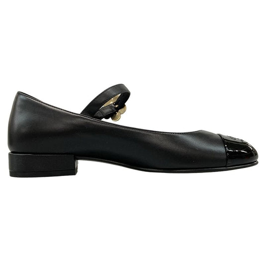 Chanel Flat Shoes 35 C Women's - G02819 Beige X Black Coco Mark Leather