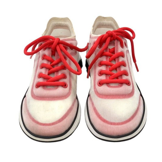 Chanel Sneakers Shoes Fabric Red White Mesh Here Mark