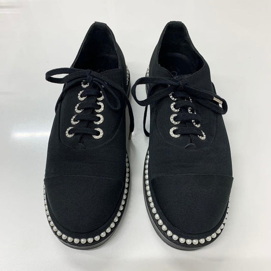 Chanel Cocomark Pearl Fabric Lace Up Shoes Black