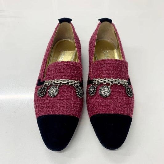 Chanel Cocomark Tweed Suede Chain Charm Flat Shoes