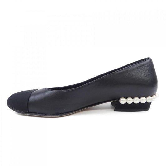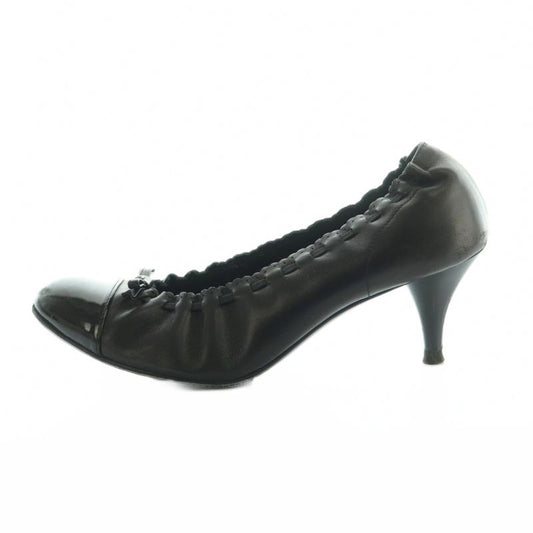 Chanel Ballet Shoes Round Toe Leather Coco Mark 35 22.0cm (8.66in) Black Black MI - OS