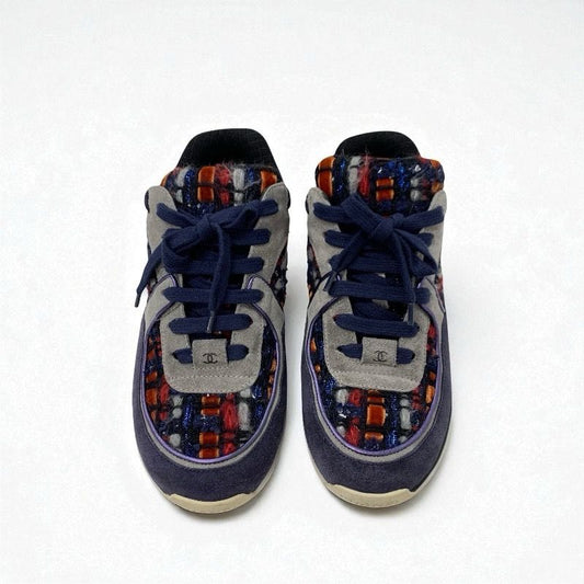 Chanel Sneakers Shoes Suede Fabric Navy Multicolor Here Mark Tweed