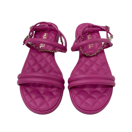 Chanel Sandals Shoes Leather Pink Gold Matelasse Coco Mark Heart Chain Strap