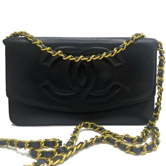 Chanel Lambskin Quilted Leather Wallet Chain Flap Black Purse Tote