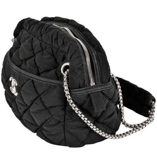 Chanel Matelasse Bubble Quilted Shoulder Bag Cotton A46168 Black Silver