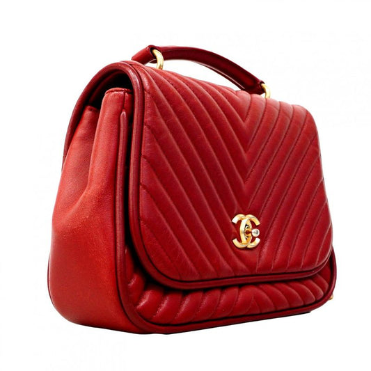 Chanel Handbag V-stitched Lambskin Red Gold Hardware Women