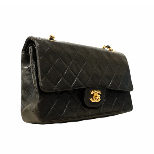 Chanel Shoulder Bag Matelasse Lambskin Black Gold Hardware Women