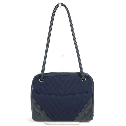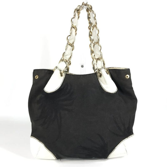 Chanel Shoulder Bag CC Coco Mark Bicolor Leather / Canvas Black