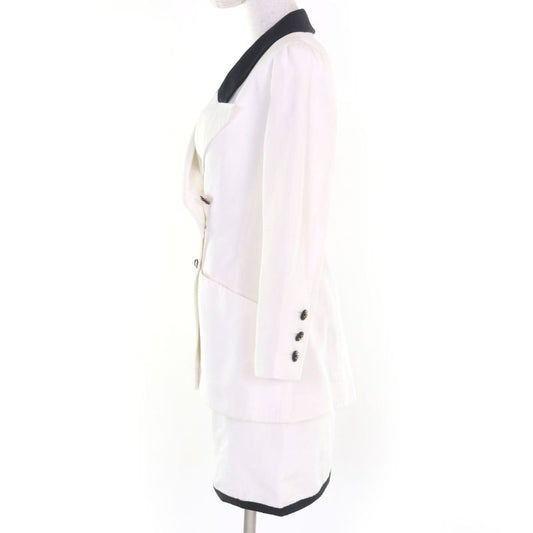 CHANEL P45580v33648 Cotton Lined 100% Silk Tweed Collarless Jacket With Coco