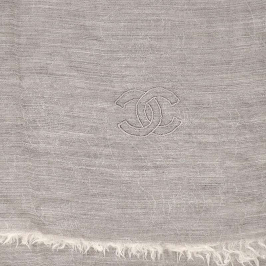 Chanel Coco Mark Embroidery Jacquard Camelia Cashmere Large Shawl Women's