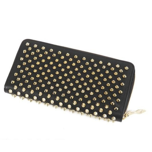 Christian Louboutin Calfskin Panettone Spiked Zip Around Wallet Black