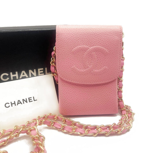 CHANEL Caviar Classic Leather Wallet Chain Flap Pink Purse Crossbody