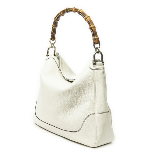 Gucci Medium Diana Bamboo Hobo Ivory Grained Calfskin Leather A