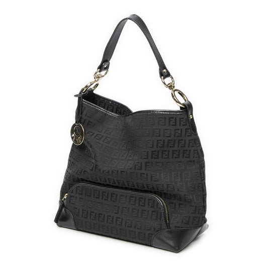 Fendi Front Slip Pocket Hobo Black Zucchino Canvas A