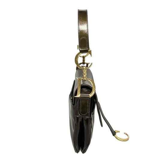 Dior/christian Dior Shoulder Bag Double Saddle Bag Dark Brown And Khaki Gold