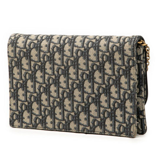 Dior Oblique Saddle Chain Shoulder Bag Beige Navy Canvas Leather Women's Dior